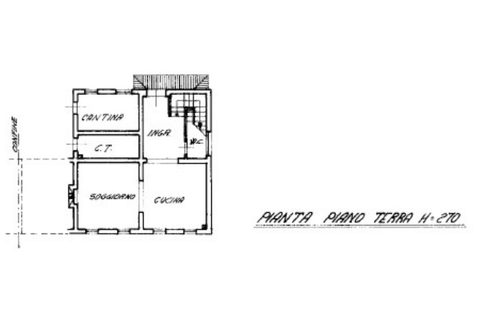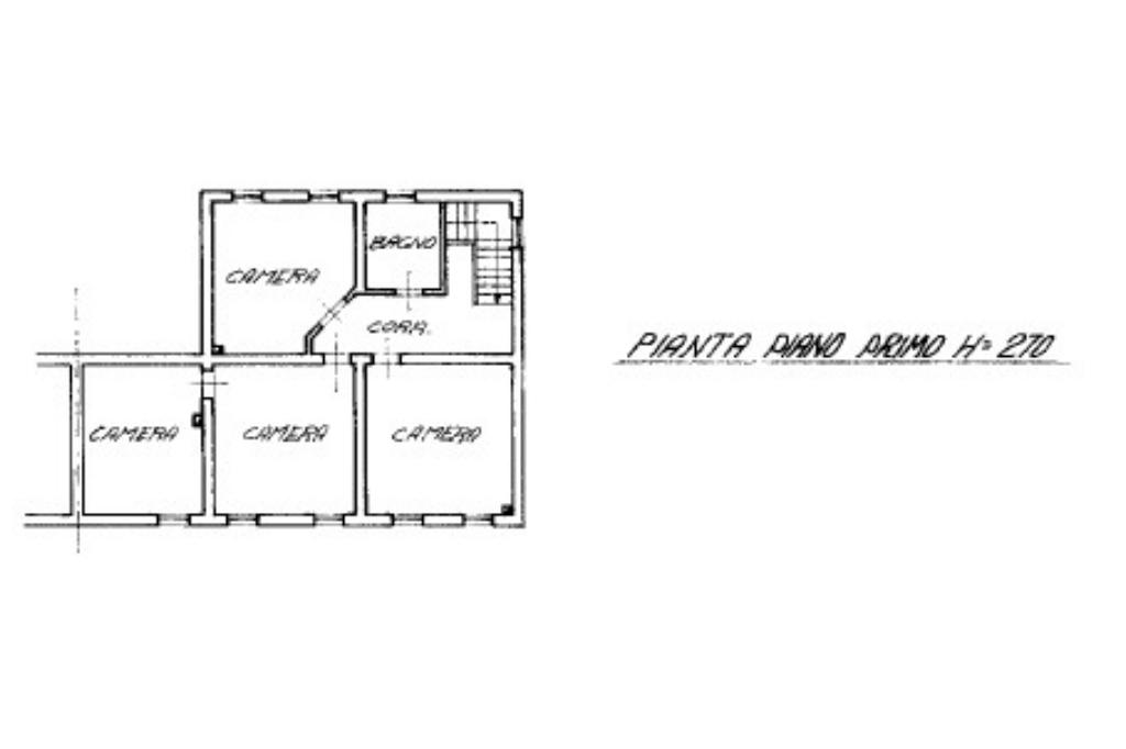 L'immobile, edificato negli anni '70 ed attualmente abitato, si sviluppa su due livelli fuori terra. Al piano terra, dopo l'ingresso, troviamo una cucina con soggiorno separato da un apertura ad arco. Completa il piano terra un servizio e le scale, che ci conducono al piano superiore, dove troviamo distribuite a destra e a sinistra del disimpegno due camere matrimoniali, il secondo bagno finestrato e la terza camera con cabina armadio.