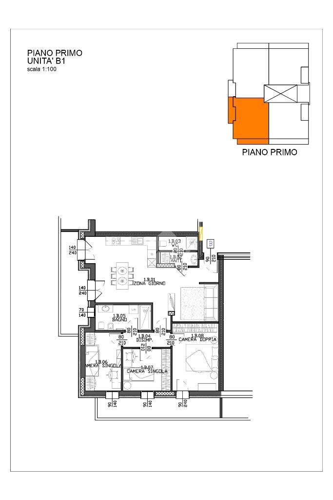 1 di 3 con ascensore (Piano medio)