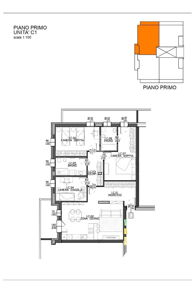 La zona notte è invece composta da tre camere, una matrimoniale, una doppia e una singola e i due bagni, entrambi finestrati.