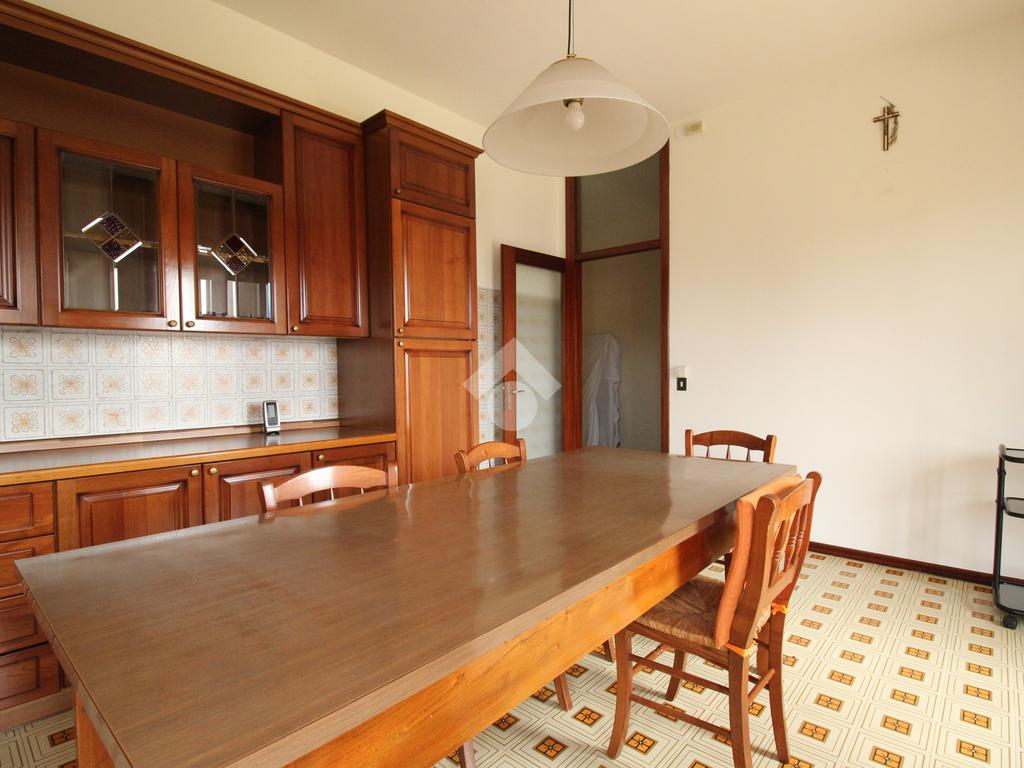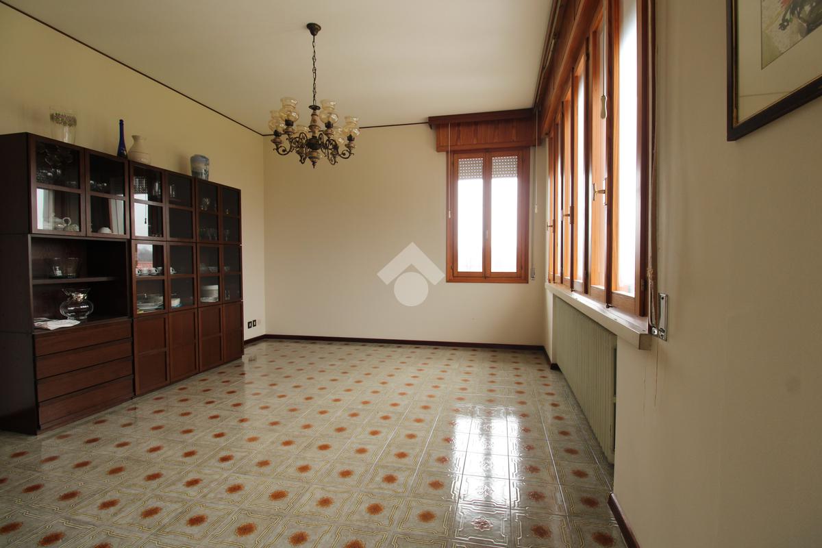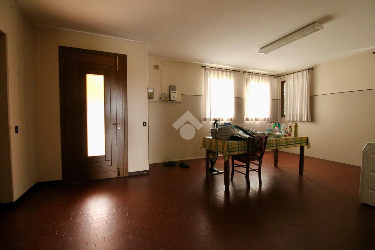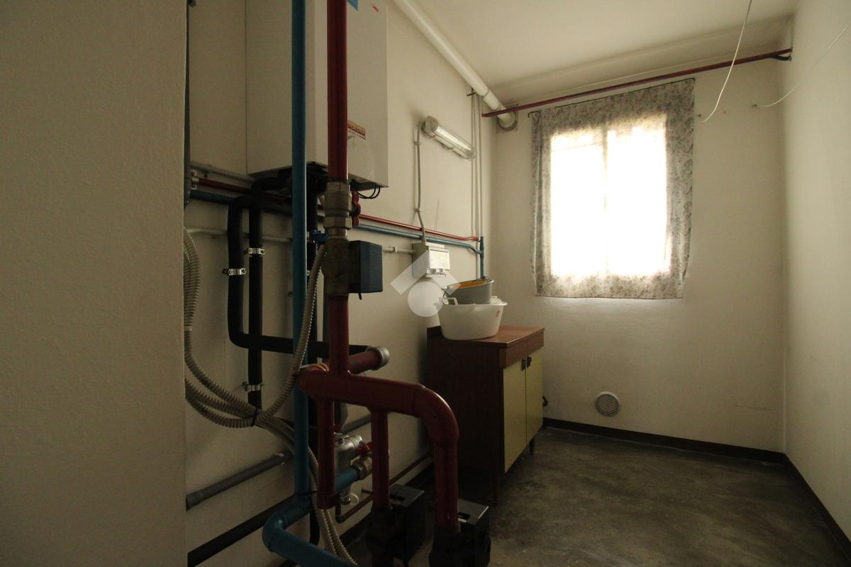 L'immobile, costruito all'inizio degli anni '70, propone un piano terra con altezza superiore ai 2.70 m, dove sono state ricavate una stanza adibita a studio o stireria, un bagno, un grande magazzino, dov'è presente una seconda entrata e la centrale termica. Oltre a ciò, è presente, scendendo circa 5 gradini, una cantina, dove si possono riporre salumi e vini.