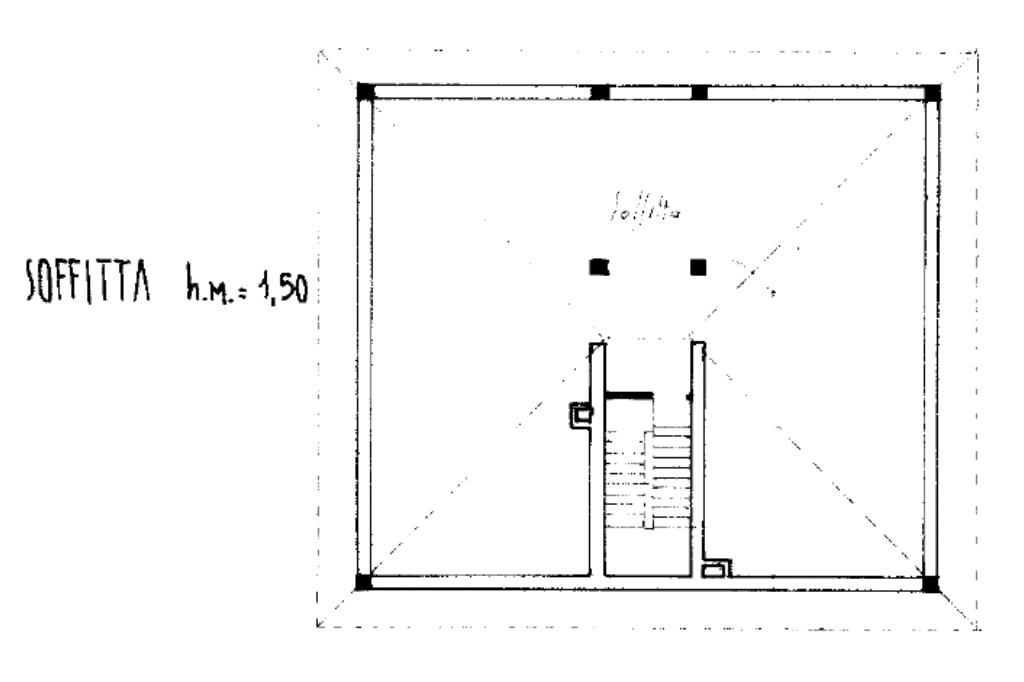 Il vano scale ci porta alla soffitta, attualmente al grezzo ed utilizzata puramente come magazzino.